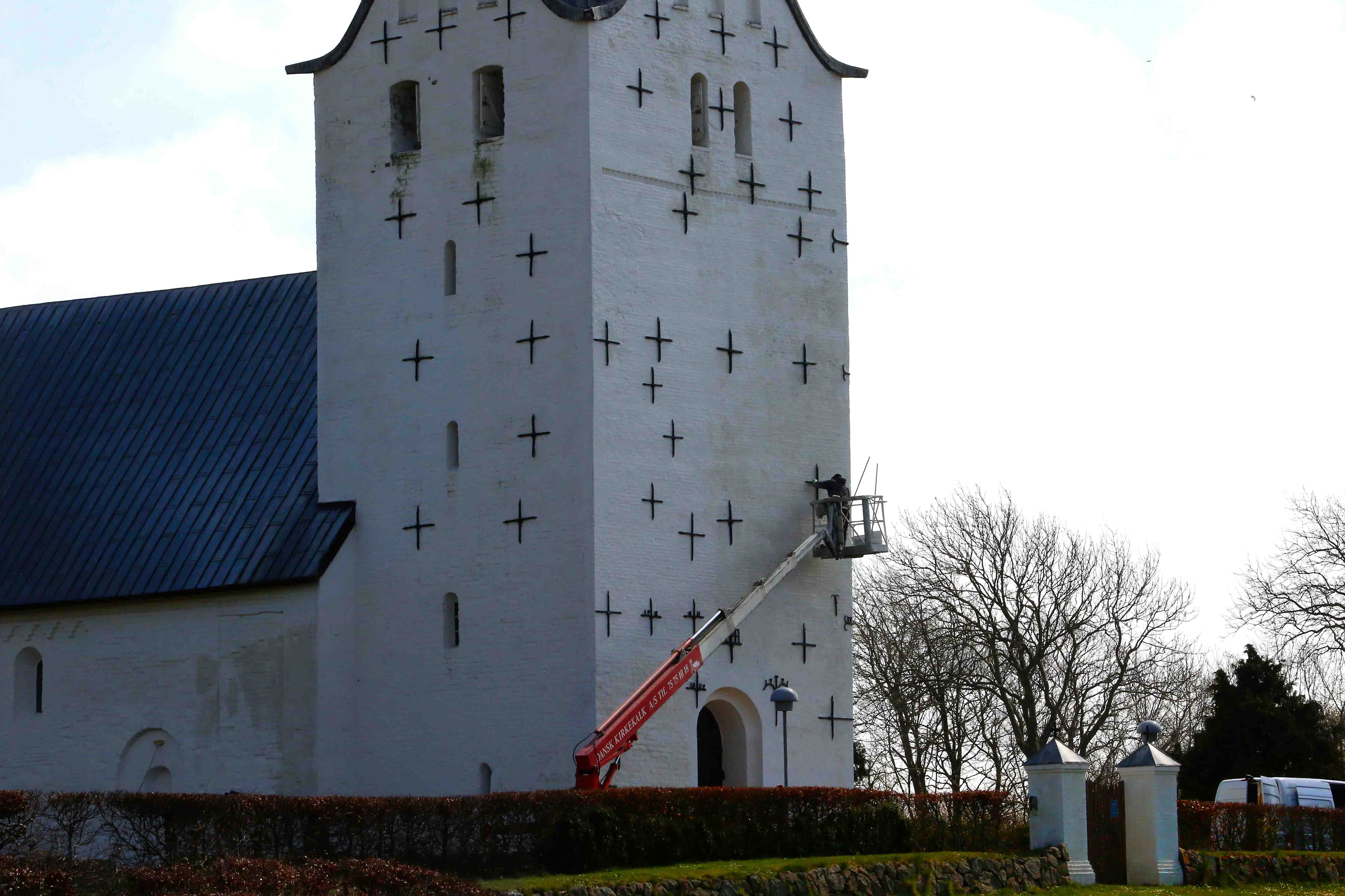 Dansk Kirkekalk har fire hold kørende over hele landet med 10 selvkørende lifte og stilladser i alle størrelser – og specielle vaskemaskiner til indvendig vaskning af hvælvinger og flader samt isblæsning og sandblæsningsudstyr. Firmaet består af tre generationer med 42 års erfaring i at renovere og kalke kirker.