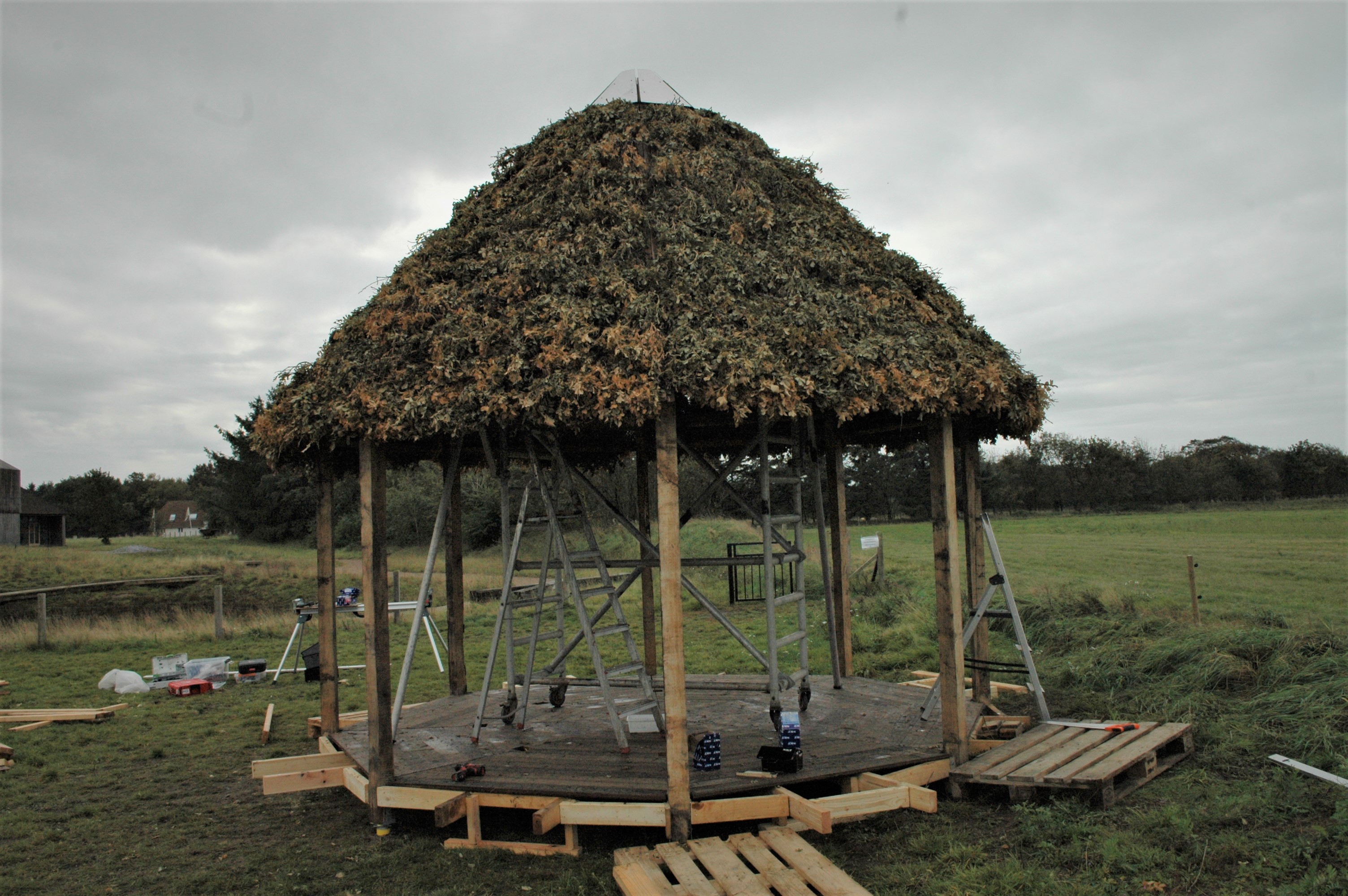 Camilla Berner har nemlig sammen med hjælpere opført en hytte ved Vadehavscentret. En hytte, der er med til at fortælle historien om den menneskeskabte ændring af vores jord, som udstillingen Jordforbindelse skildrer gennem kunstnere – både de ældre og de moderne – og en række installationer, der viser nogle af de remedier, mennesket har brugt i tidens løb, og som alle har medført ændringerne eller medvirket hertil.
