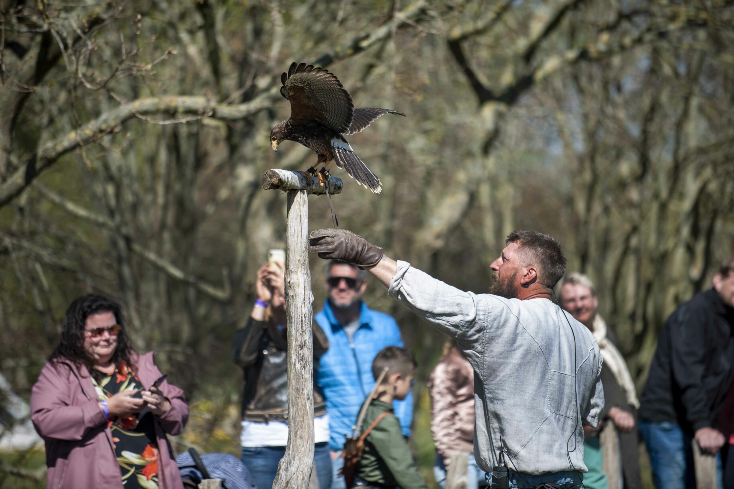 Flot show og dygtig formidling om falkenes liv. Falkene der bruges på Ribe Vikingecenter, er alle udenlandske fugle.
