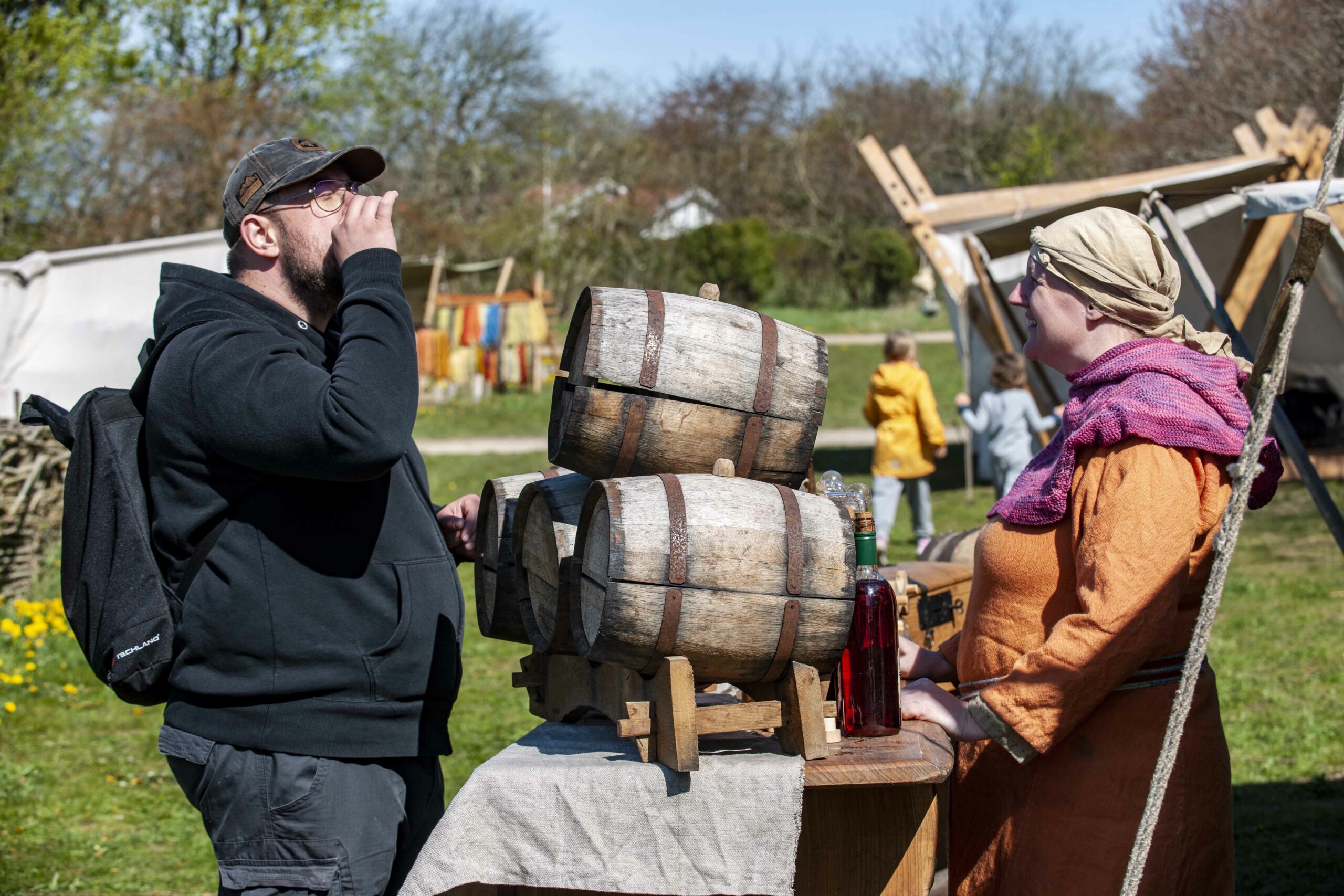 På vikingemarkedet kan man opleve en unik markedsstemning. Dufte af røg, mad og heste, og vinden, der bærer lyden af fremmede tungemål og brølende vikinger hen over pladsen.