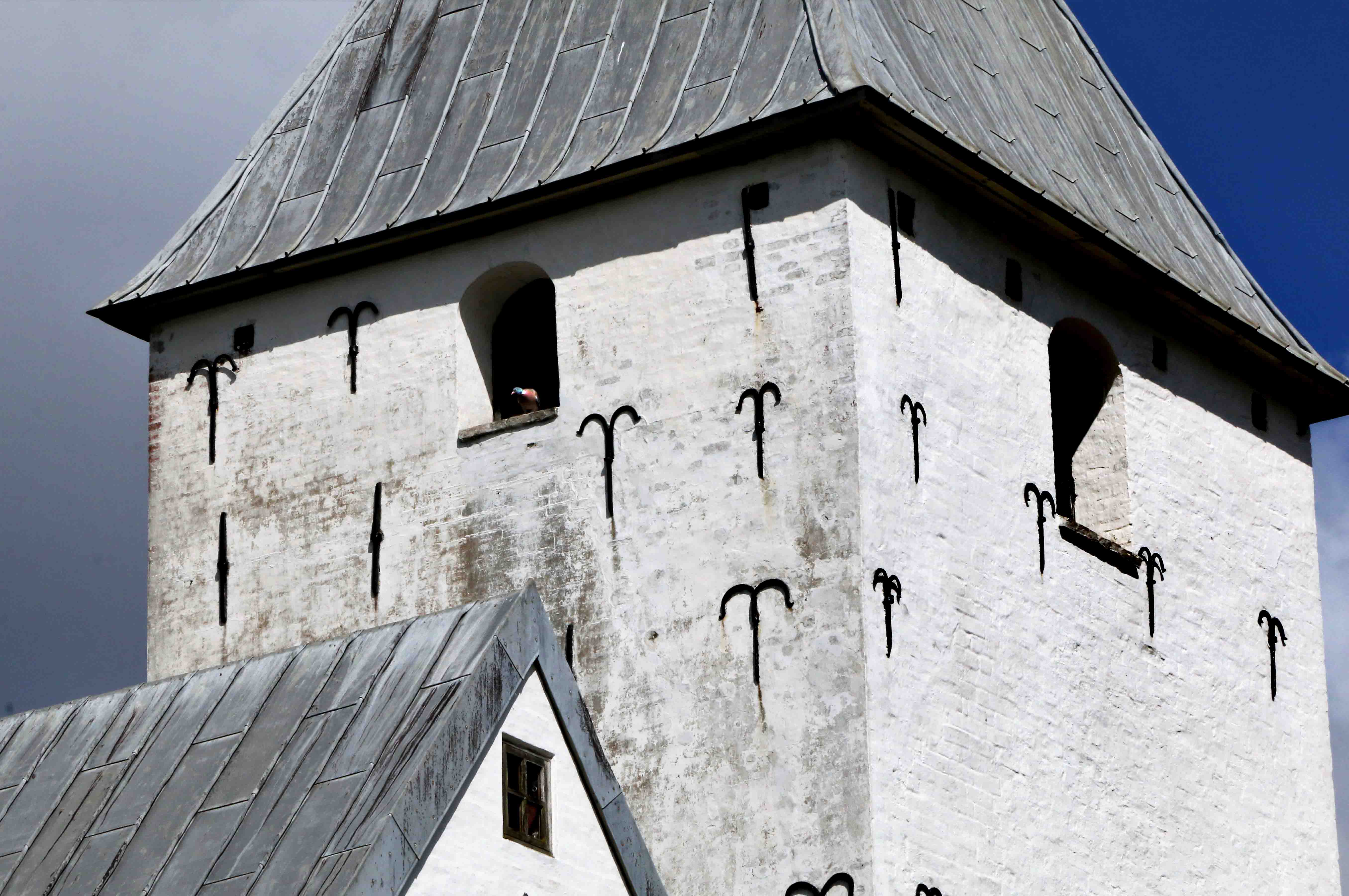 Mens vi stod og snakkede, havde et par duer travlt med at bygge rede i det østvendte klokketårn. Der var både kurren og tabte pinde i luften. – Det går nok som det plejer, kom det fra medarbejderen: – Duerne er virkelig dårlige til at bygge reder – og ofte vælger de umulige steder. De sidste par år er rederne faldet ned, inden æggene er blevet ruget ud.