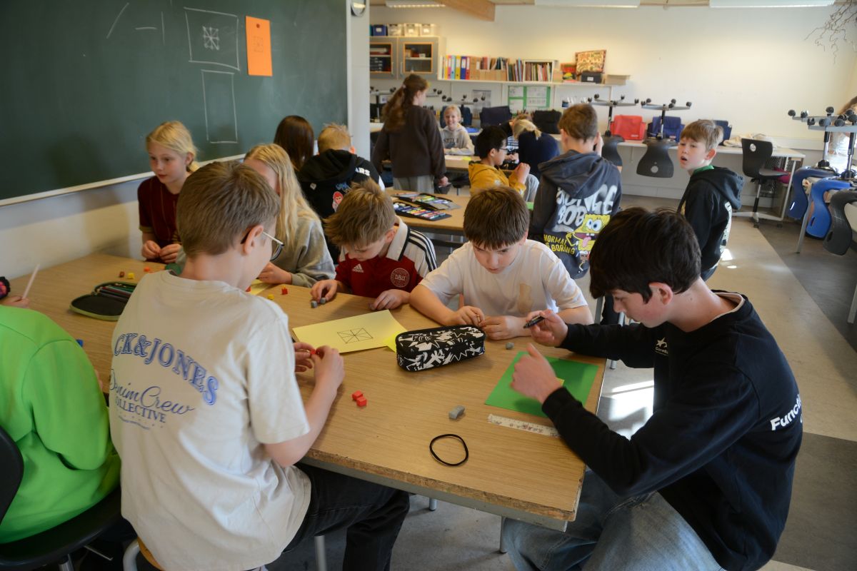 Der arbejdes både inden døre, ude i skolegården og på boldbanerne, ligesom nogle elever er rundt i byen for at finde ting, der kan relatere sig til middelalderen.