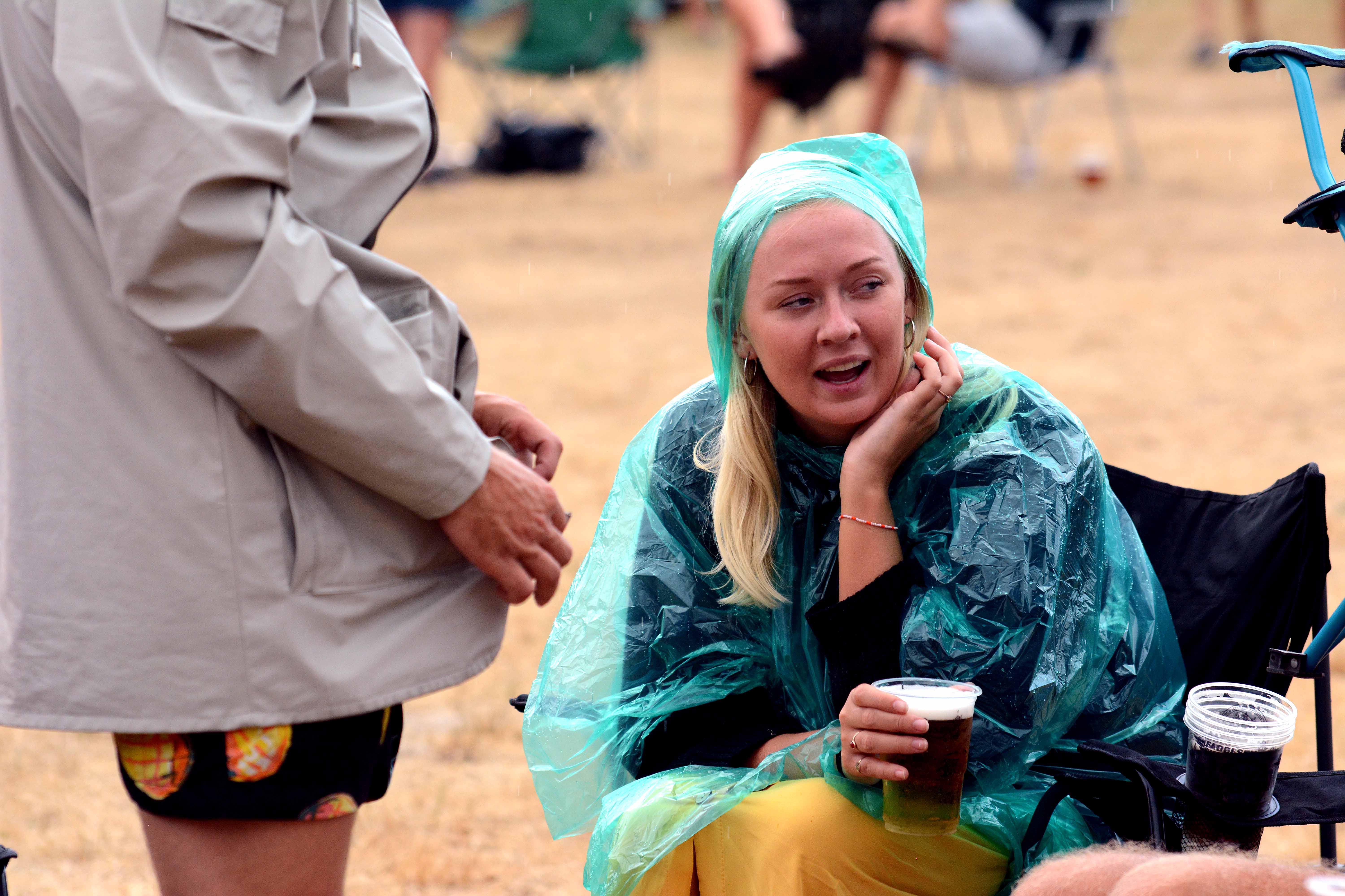 En stille buldren kom tættere på festpladsen – og lige pludselig satte regnen ind med så store dråber, at festivalens gæster måtte søge ly i telte og klubhuset.