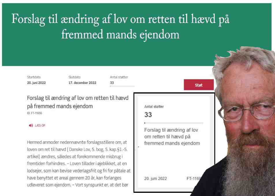 Søren Mulvad savner 49.967 støtter til forslaget om retten af hævd på fremmed mands ejendom Galleri Søren Mulvad savner 49.967 støtter til forslaget om retten af hævd på fremmed mands ejendom Artikler, Nyheder